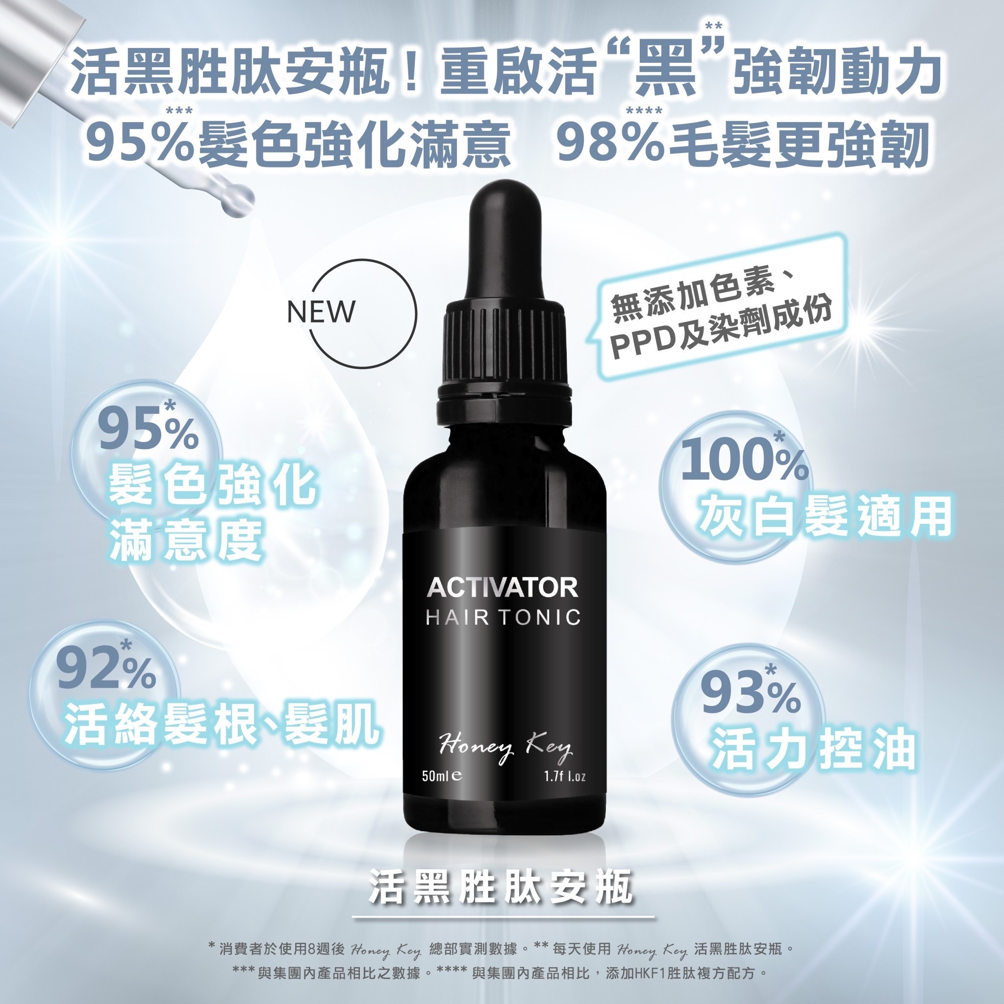 其中,科技髮妝品牌代表 Honey Key 的「活黑胜肽安瓶」,在此次獲得「世界品質大獎 MONDE SELECTION -金獎」,由於該產品創新研發將活黑胜肽成份應用在頭皮養護,可讓秀髮更顯烏黑亮麗。活黑胜肽的創新科技獲獎也成為本屆亮點之一。