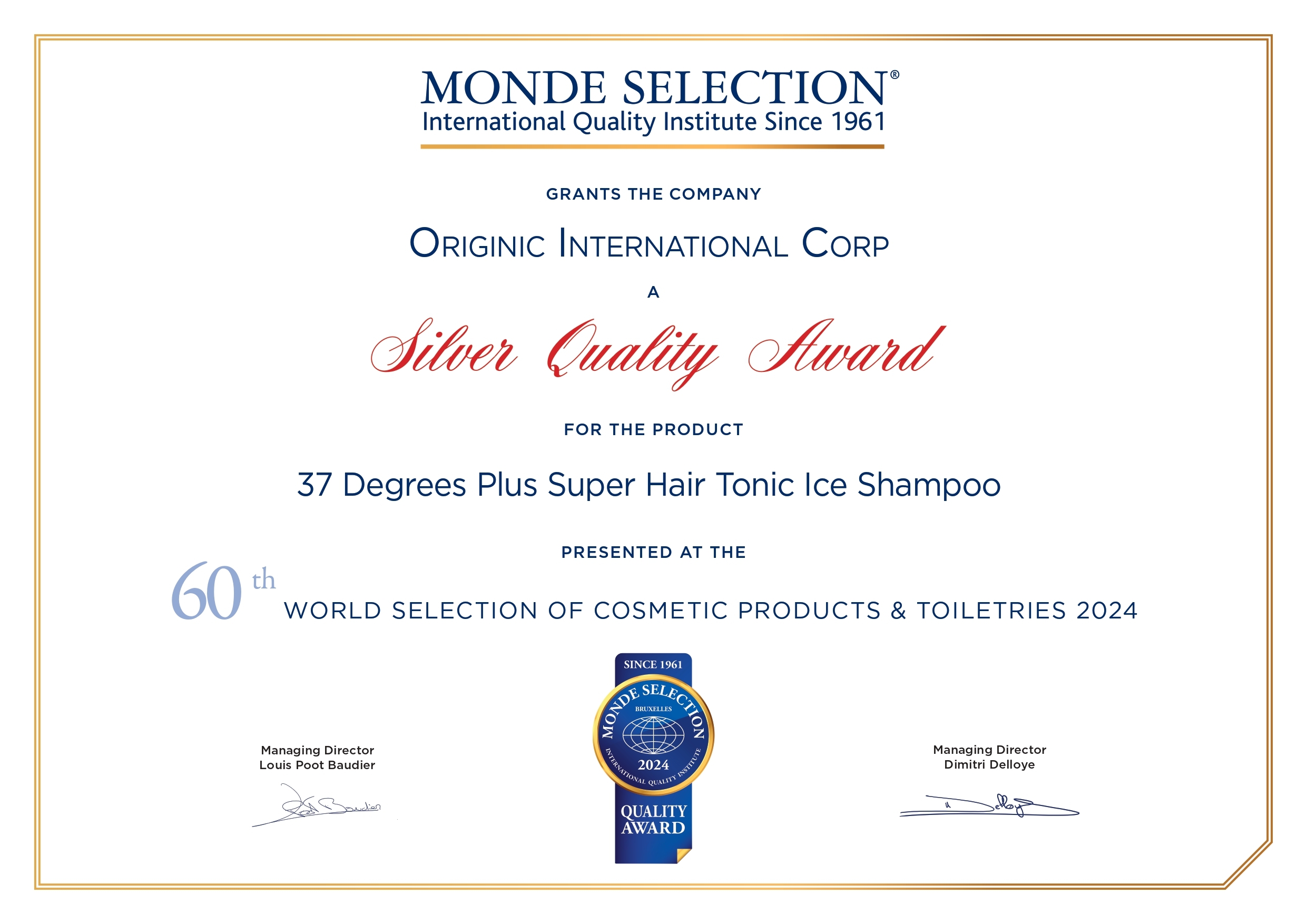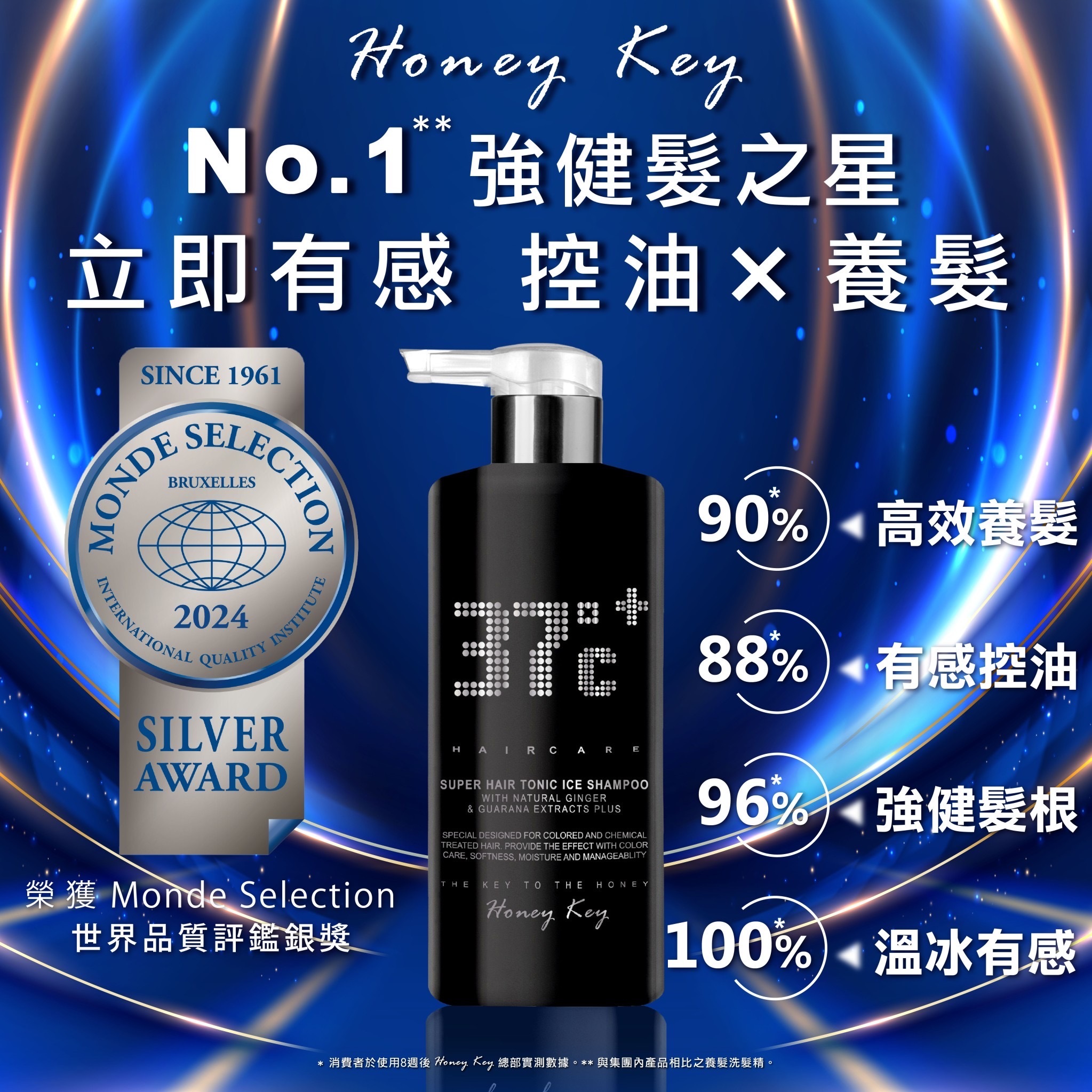 由 Monde Selection 世界品質評鑑大賞委任的專家評審團按照依據嚴格標準制定的嚴苛評核流程對 Honey Key 37 degrees plus hair tonic shampoo 進行了評量和詳細審查。評審團由該領域的獨立國際專家組成,例如大學講師、化學工程師和美妝保養品專家。產品評鑑過程與專家評審團經過驗證的專業知識相結合,肯定了本獎項的價值。