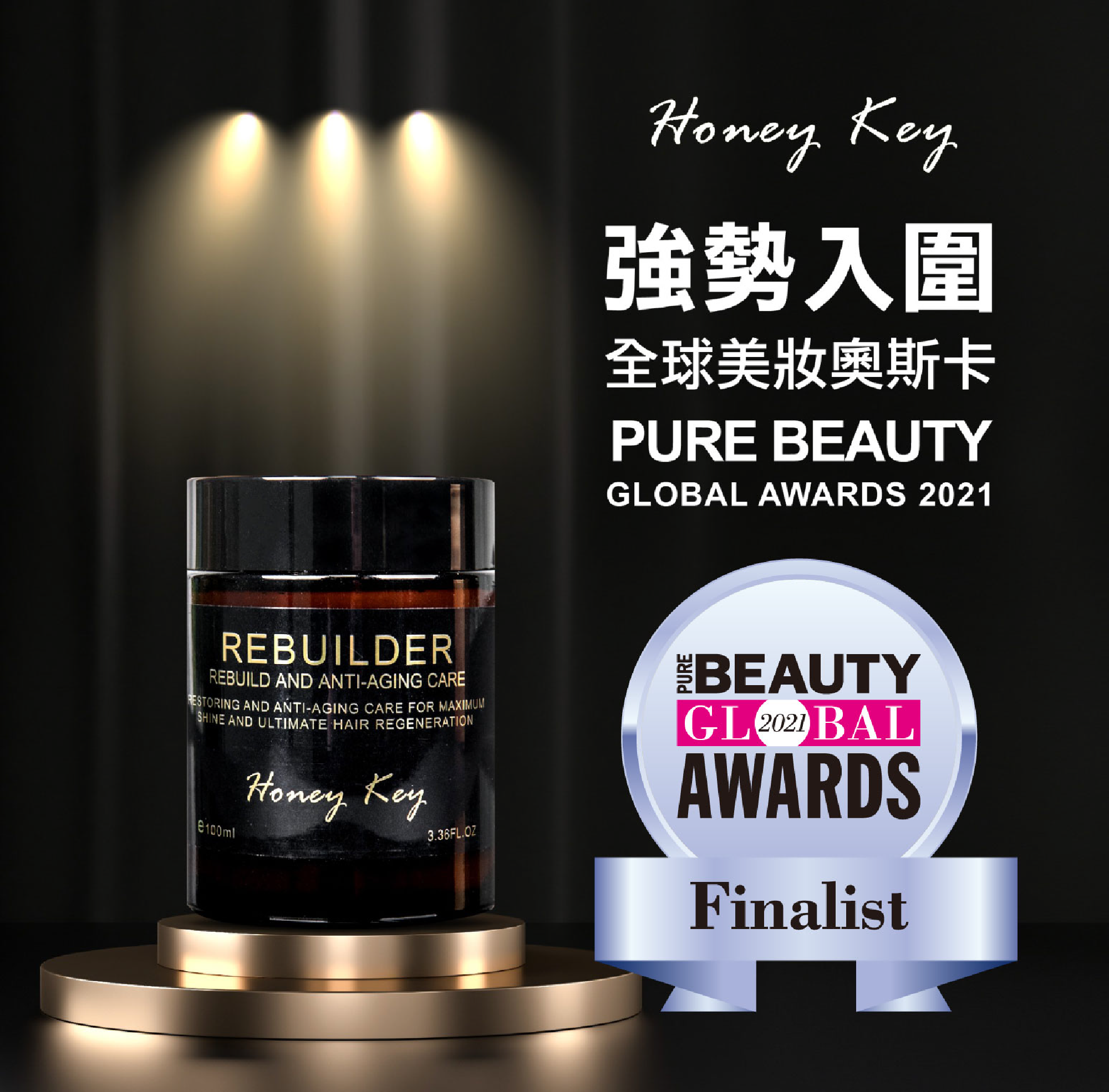 「全球美妝大獎Pure Beauty Global Awards」,由英國專業美妝雜誌 Pure Beauty Magazine連續舉辦18年,為全球美妝最具指標之一的專業國際比賽,每年都會評選來自全球各地最新、符合趨勢潮流、最值得推薦的美妝商品。有別於一般美妝獎項由單一的美容編輯評測,Pure Beauty Global Awards會組成國際性的美容專家評審會(International expert judging panel),從各類美妝產品研發、原料成分專家、國際美妝採購、美妝雜誌編輯、髮型師、化妝師、美妝產品製造業者、美妝零售業者等,涵蓋360度美妝領域的專家所組成,從產品的有效性、包裝設計、功能和創新進行評選。今年全球超過40個國家,超過800款商品報名,Honey Key 哈尼淇「白松露奢華乳霜」強勢入圍決選名單,在競爭激烈的全球美妝品牌中深受肯定,是銷售與實力的最佳見證!