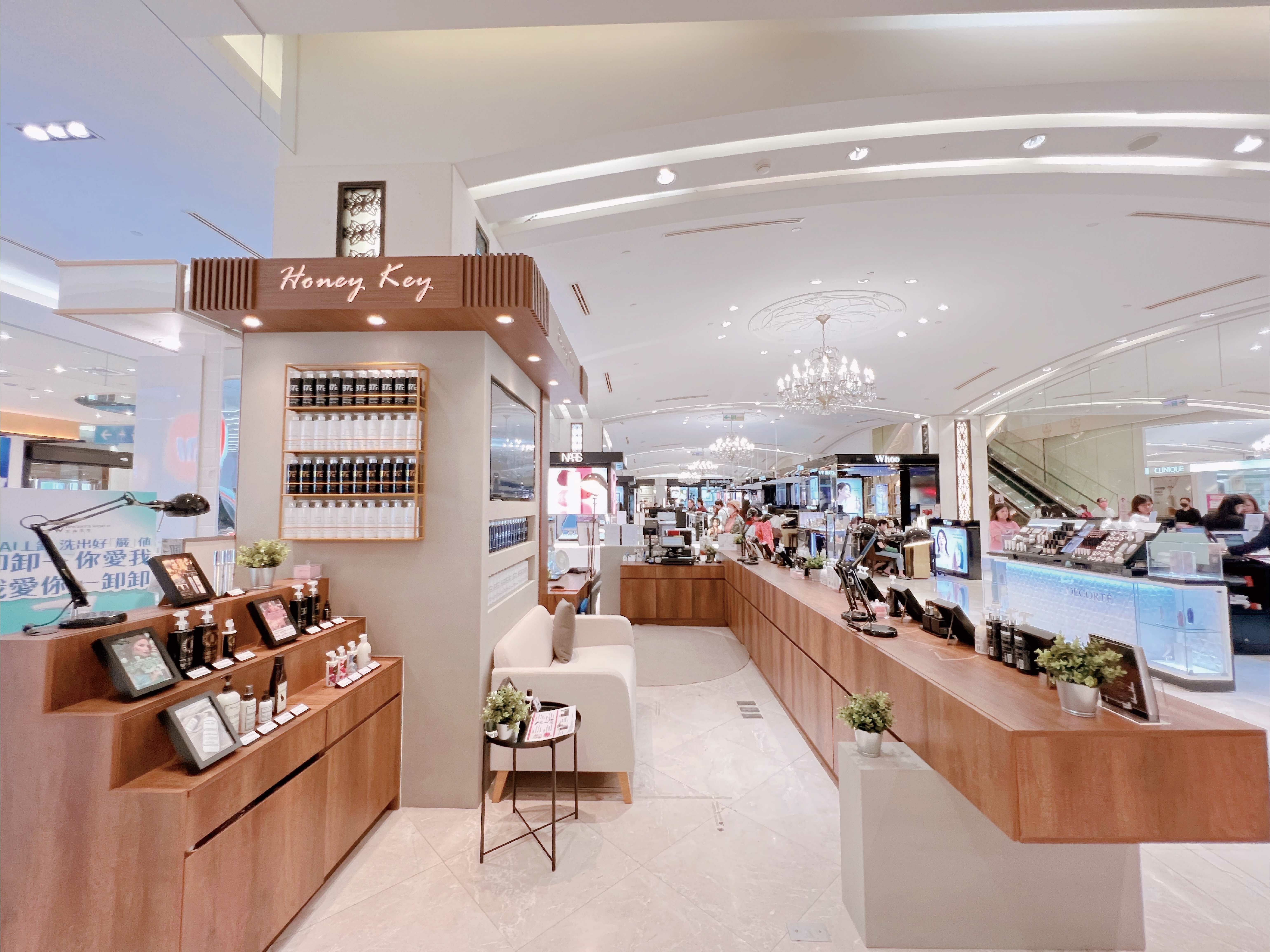 HONEY KEY全新專門店9月1日於高雄夢時代盛大開幕,寬敞、優雅、時尚店裝,坐落於1樓國際化妝品區精華絕佳的位置。此專門店結合品牌極簡奢華的氛圍,打造全新的裝潢概念。寬敞舒適的購物空間,採用HONEY KEY一貫的原木色及清水模牆面搭配簡約的展示櫃台,從經過就能一睹店內空間,勾勒出奢華精緻的意象。